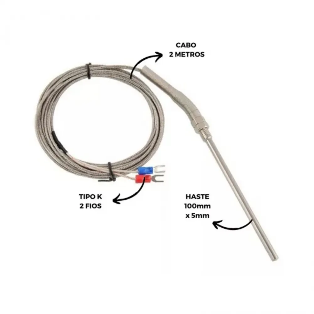 • Acompanha Sensor Tipo k de 2 metros com haste inox 100mm - controla até 600 graus