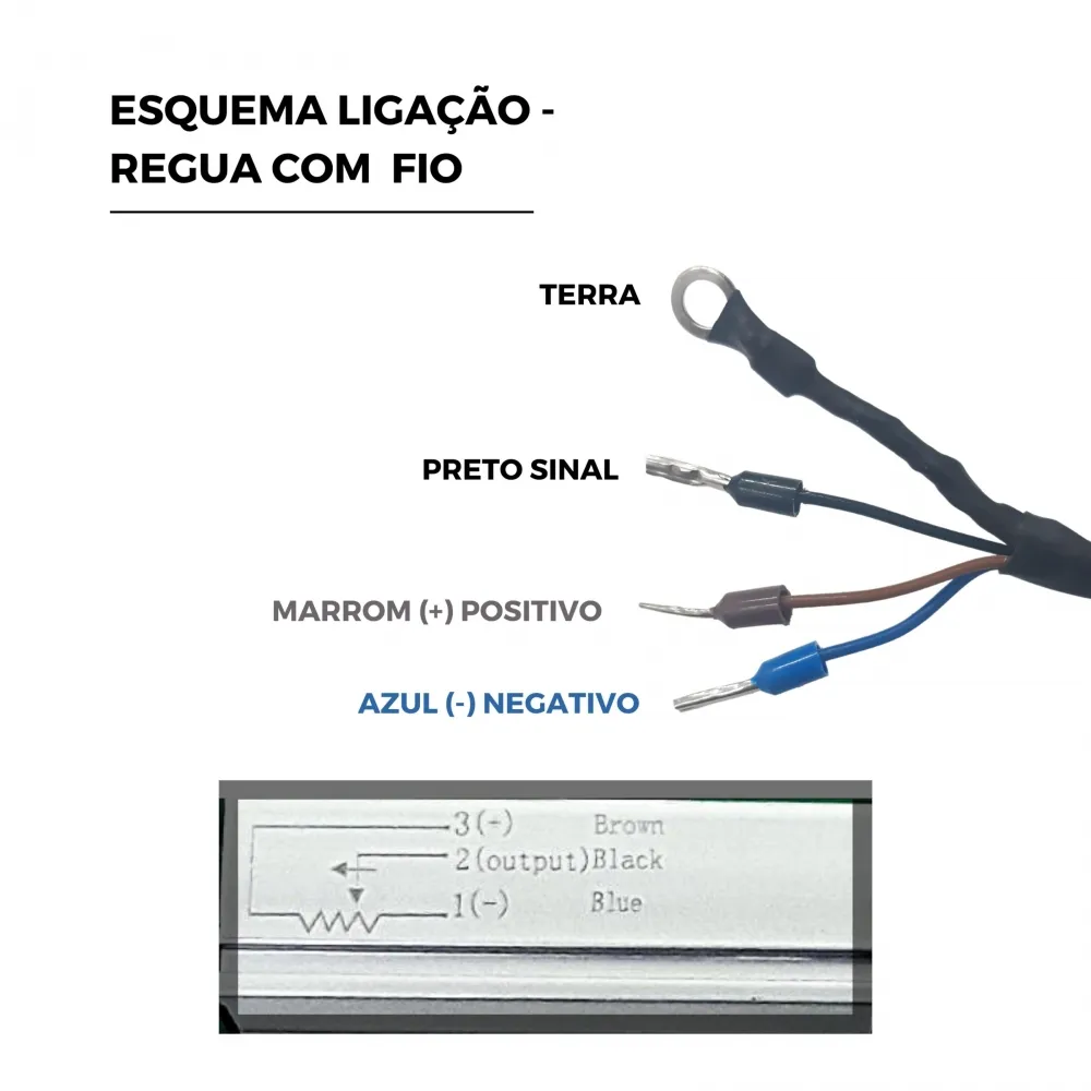 Conhecido também como: Régua Potenciométrica, Sensor Linear de Posição, Transdutor Linear de Posição