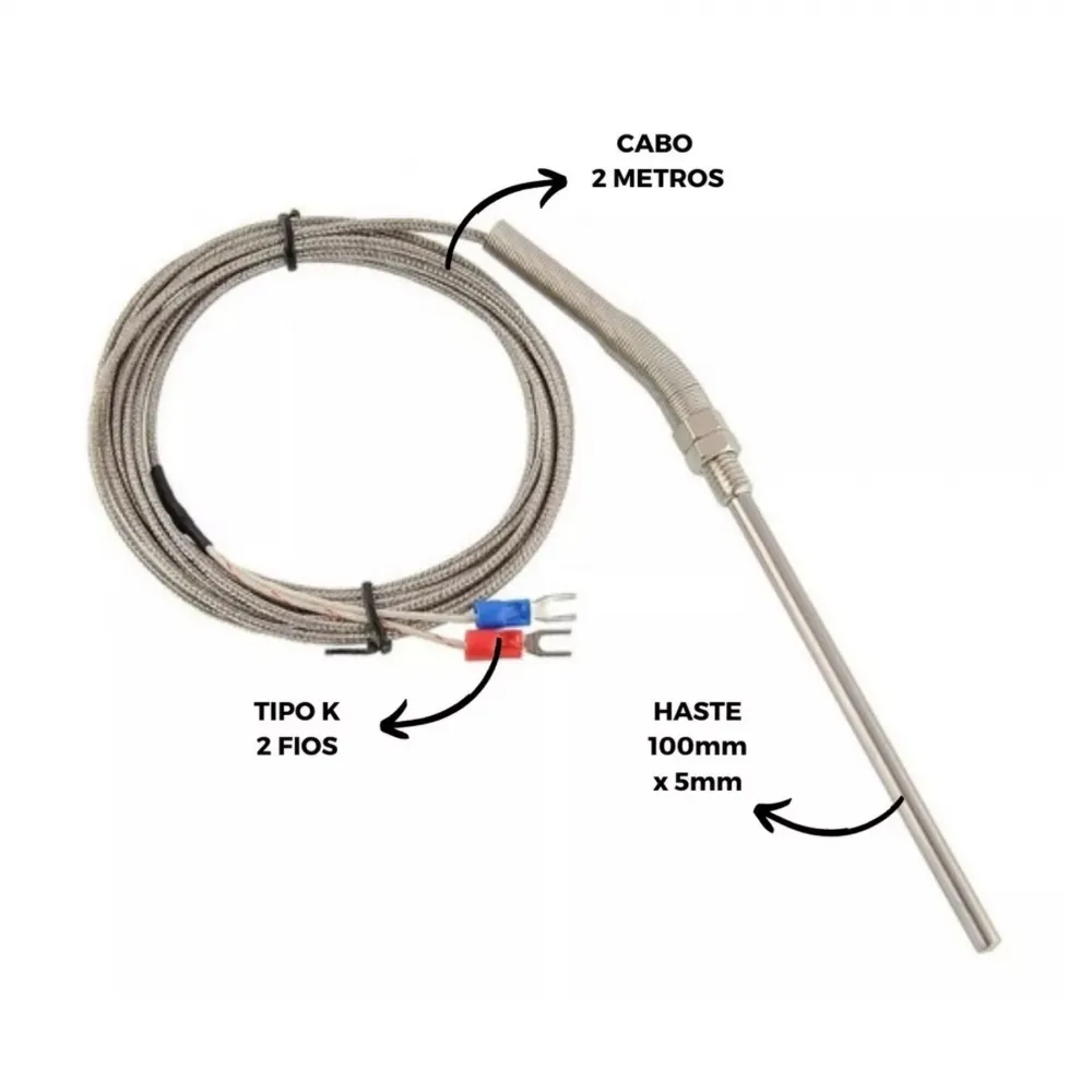 SENSOR TERMOPAR TIPO K PONTA 100MM 2 METROS