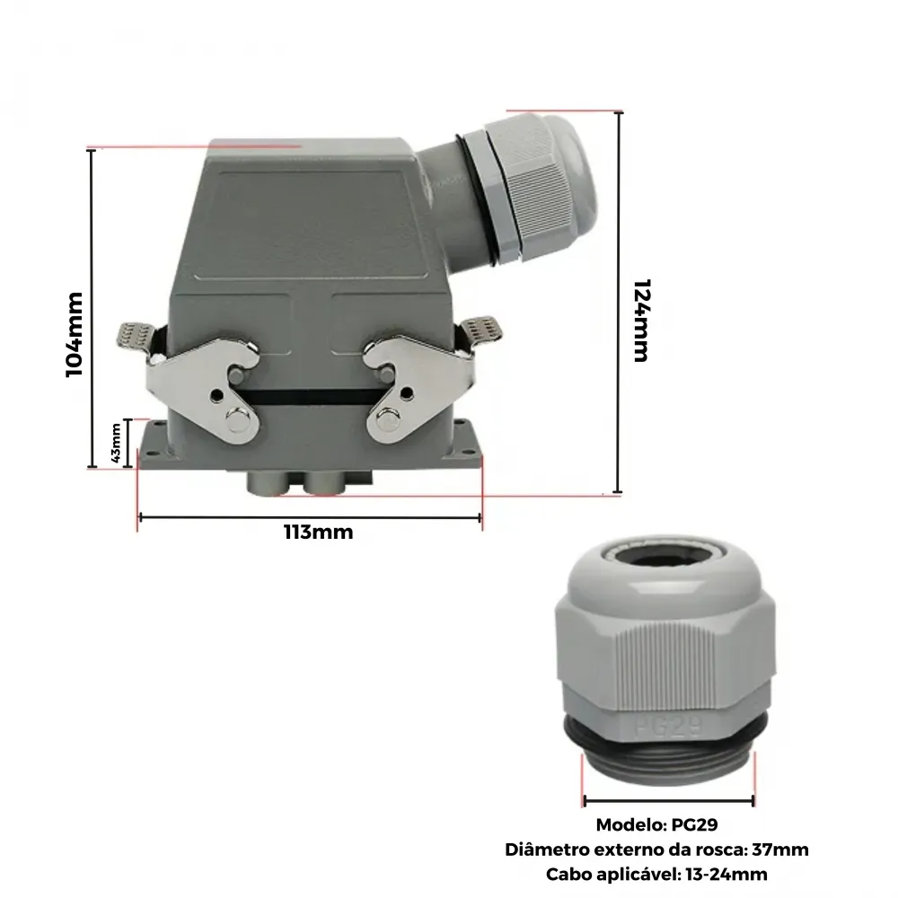 TOMADA 6 PINOS 80A 690V COMPLETA SAÍDA LATERAL